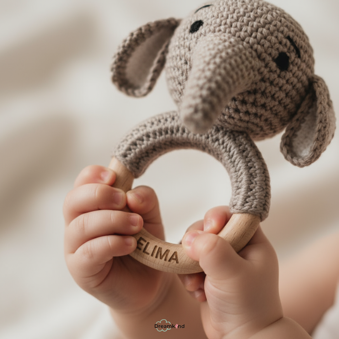 Der gehäkelte Greifling und die hübsche Schnullerkette von Dreamkind sind nicht nur praktische Alltagshelfer, sondern auch ganz besondere Erinnerungsstücke. Beide können mit dem Namen des Babys graviert werden – für ein Geschenk, das so einzigartig ist wie das kleine Wunder selbst.