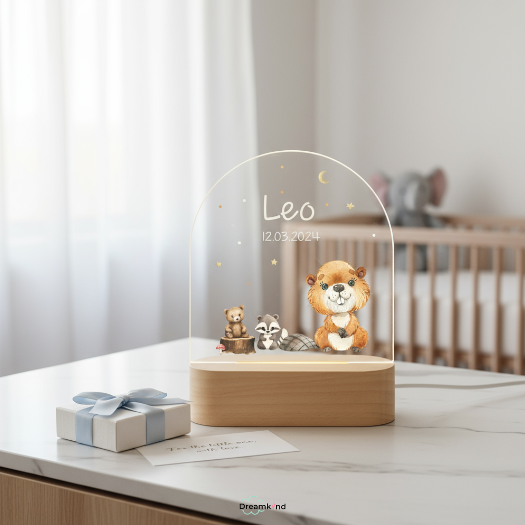 Durch das einzigartige Design mit liebevoll gestalteten Motiven wird das Nachtlicht zum echtem Blickfang, den dein Kind lieben wird. Das besondere ist, dass du den Namen deines Kindes und das Geburtsdatum eingravieren lassen kannst.
